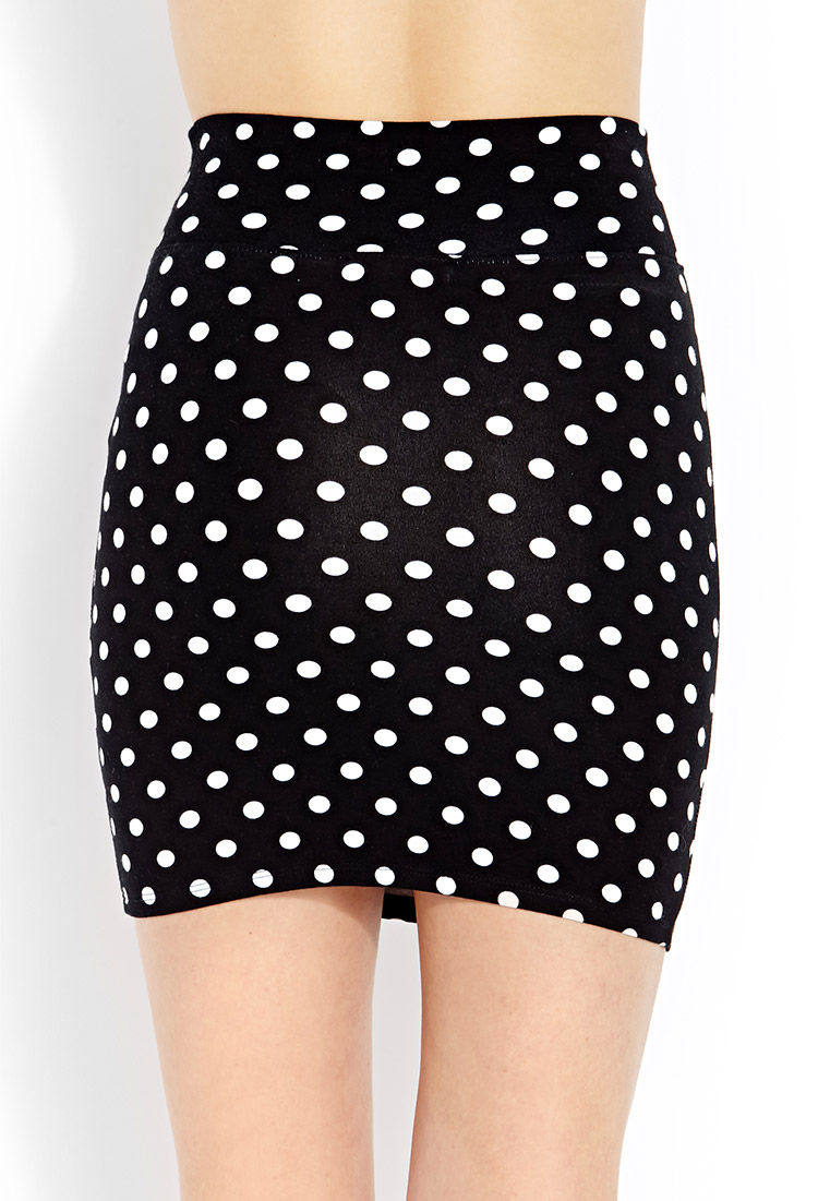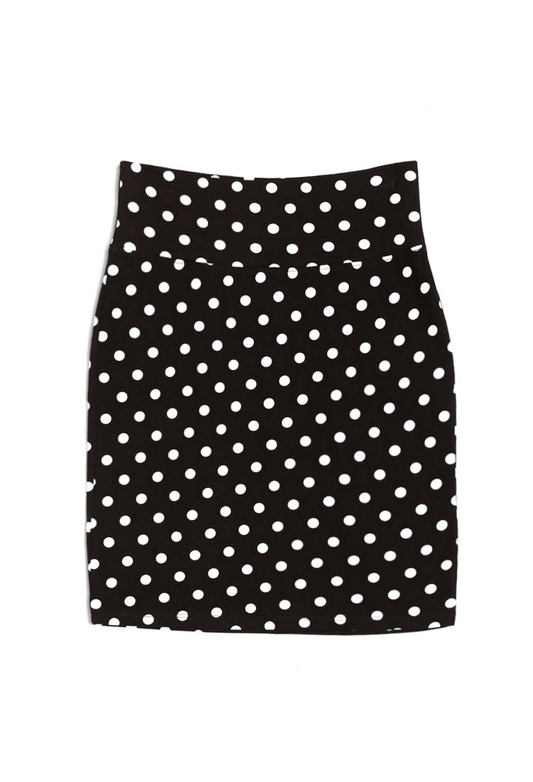 Կոնքային, ուղիղ, կարճ, սևի վրա սպիտակ պուտերով, նուրբ և գեղեցիկ, դասական կիսաշրջազգեստ: