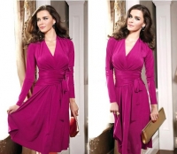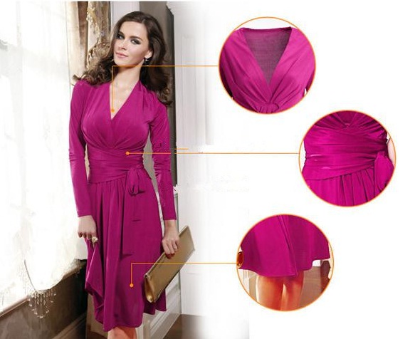 Վզի սրտաձև բացվածքով, երկարաթև, կրծքավանդակից ներքև նույն կտորից հաստ գոտիով, կողքային հատվածում գոտիի բանտ դառնալու հնարավորությամբ, կարճ, գործնական, գեղեցիկ շրջազգեստ: