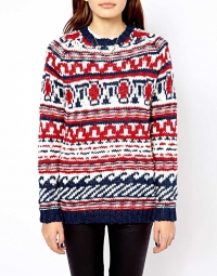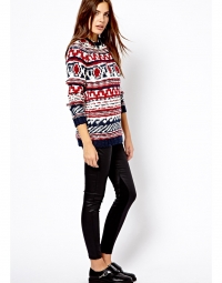Վզի կլոր բացվածքով, երկարաթև, բազմերանգ ապստրակտ նախշերով բլուզ: