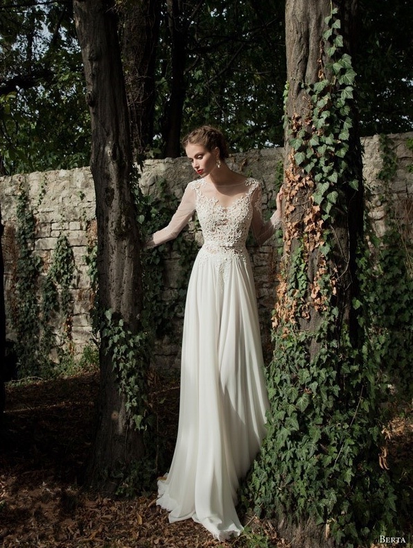 Երկար ժանյակավոր թևերով, վզի կլոր բացվածքով, բաց մեջքով, գոտկային հատվածից վերև ժանյակավոր, երկար, հարսանեկան շքեղ շրջազգեստ: