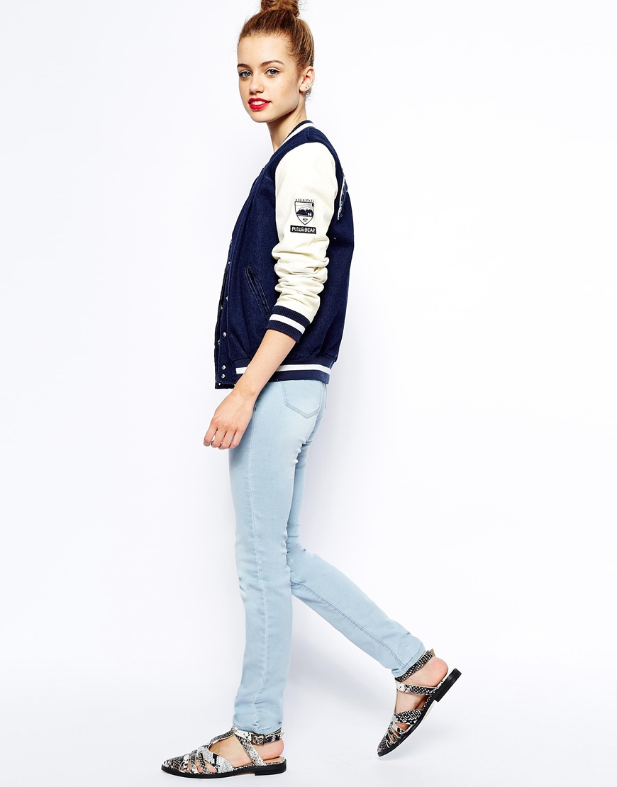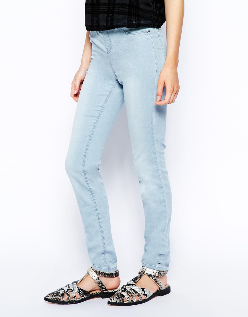 Բաց կապույտ, ջինսե, նեղացով, գրպաններով տաբատ: