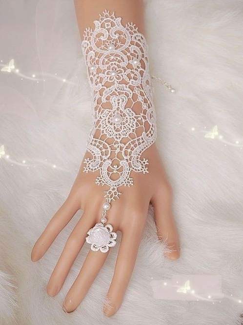 Ամբողջությամբ ժանյակավոր, մատանով, գեղեցիկ ձեռնոց աքսեսուար: