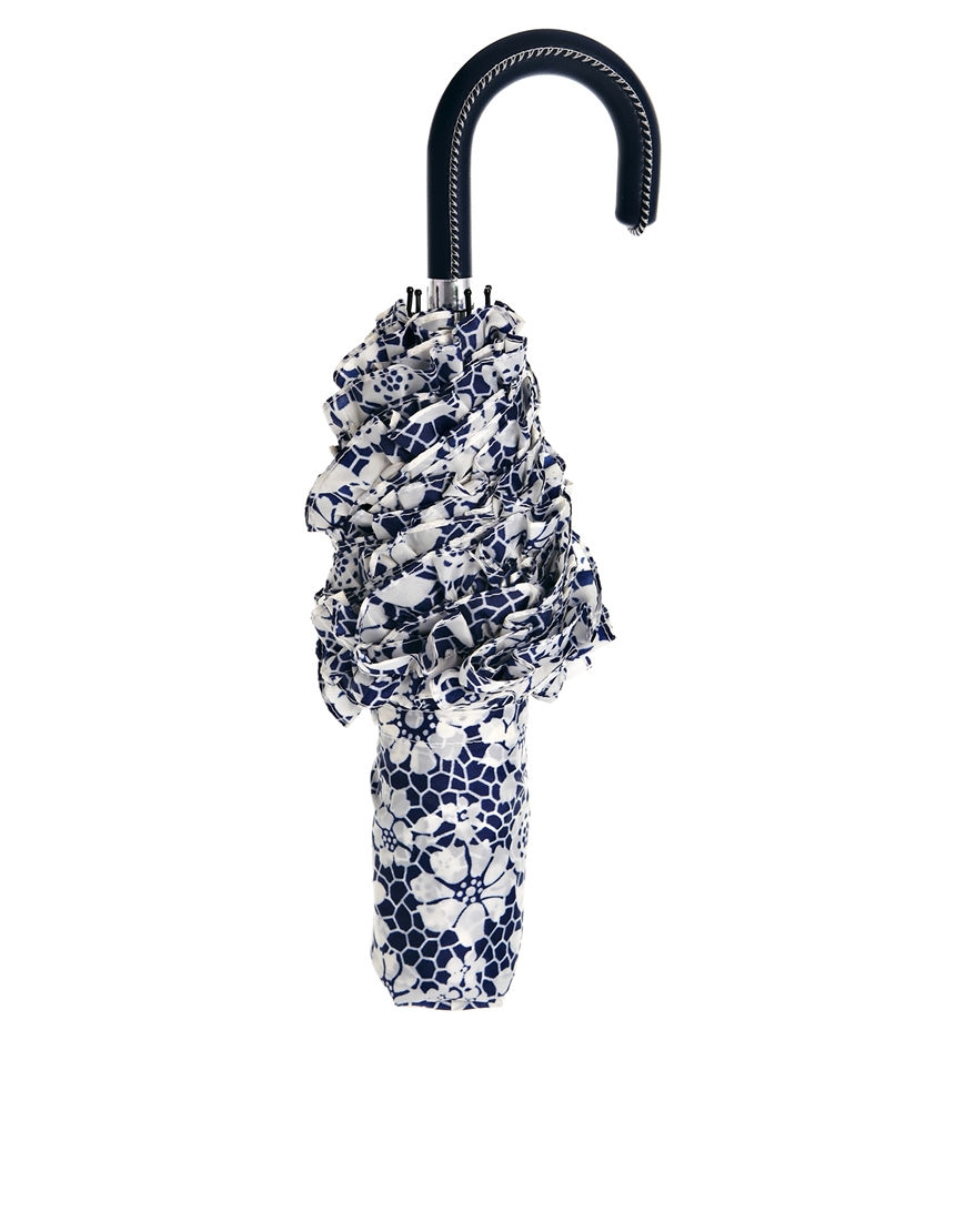 Ամբողջությամբ ծաղկային նախշերով, կապույտի և սպիտակի համադրությամբ, գեղեցիկ անձրևանոց: