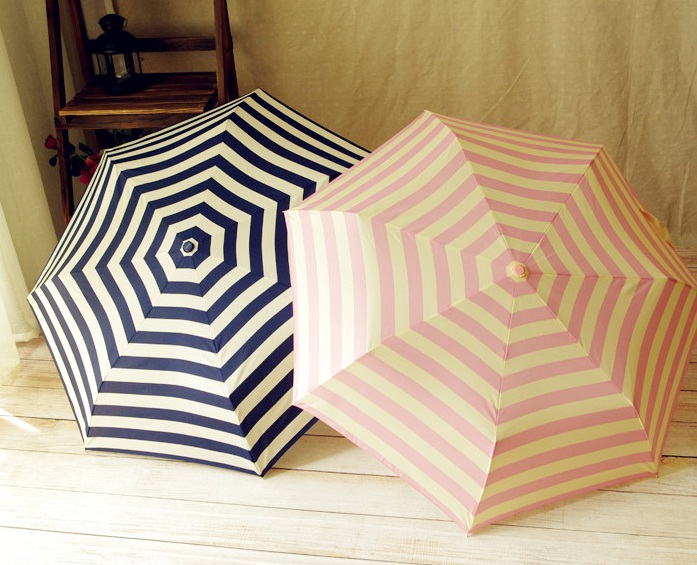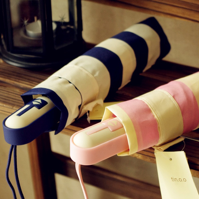 Սպիտակ-կապույտի կամ սպիտակ-վարդագոիյնի գունային գծավոր գեղեցիկ համադրությամբ, փոքր չափերի, գեղեցիկ անձրևանոց: