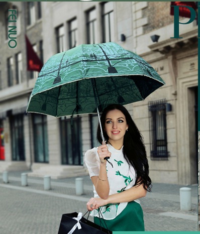 Կլոր, փոքր չափերի, փողոցային լույսերի նախշերով, նորաձև անձրևանոց: