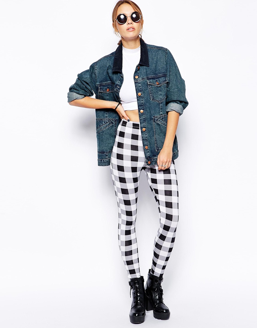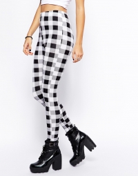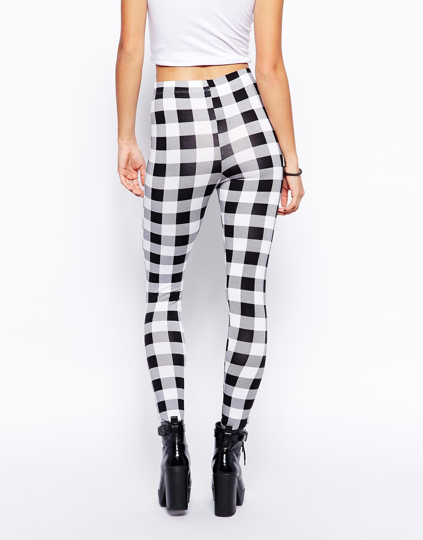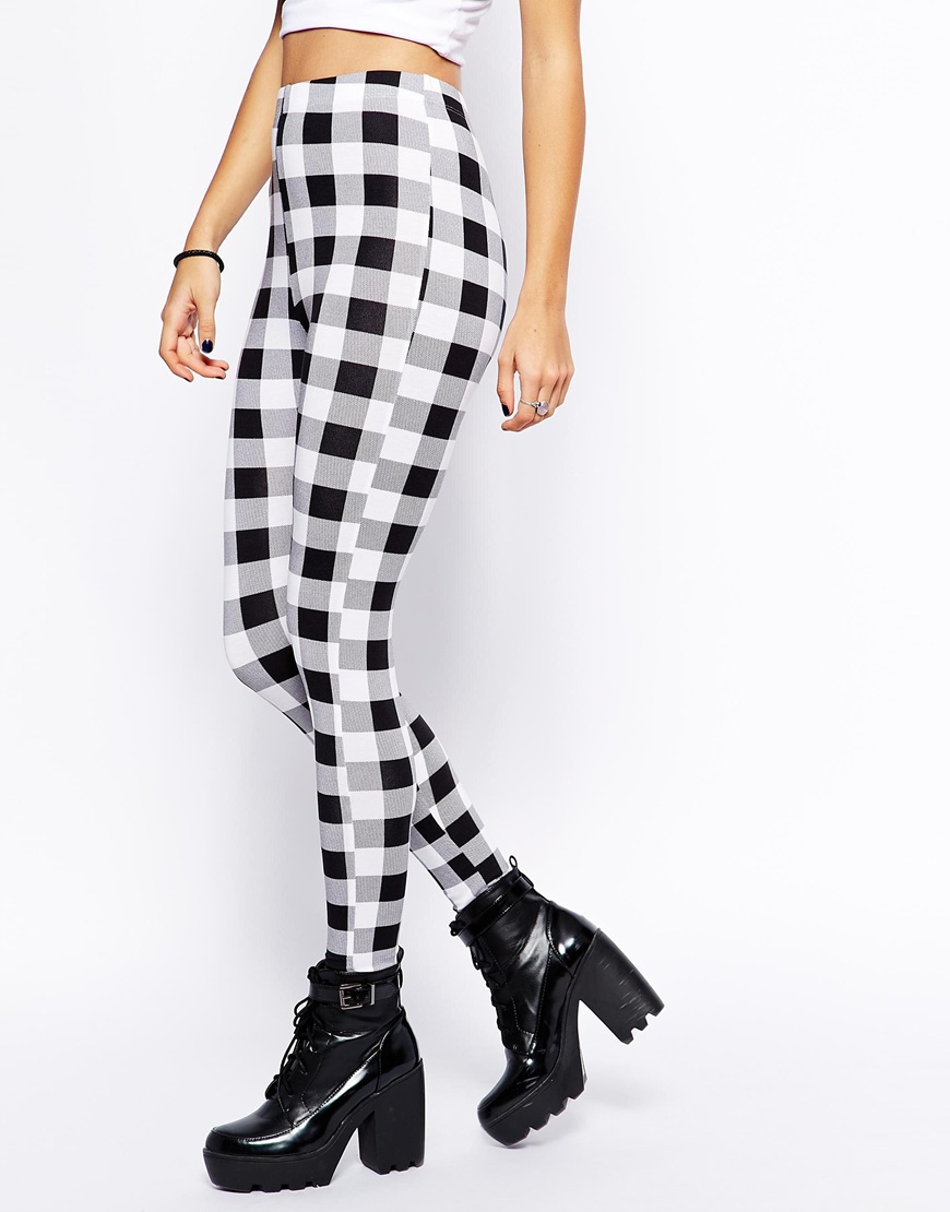 Սպիտակի, սևի և մոխրագույնի համադրությամբ վանդակավոր նախշով լեգգինս