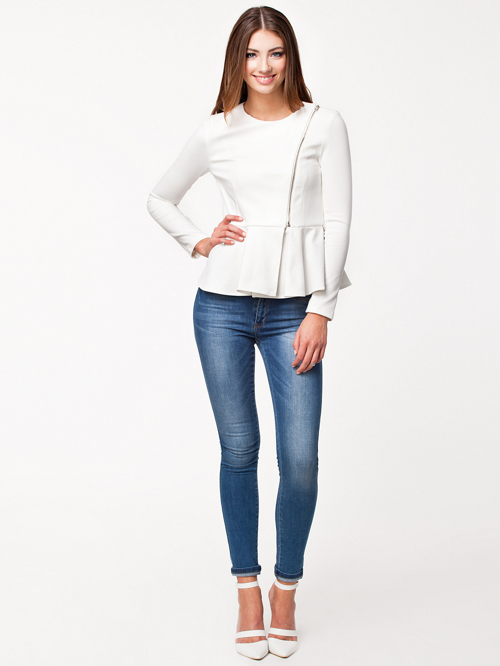 Վզի փակ, կլոր բացվածքով, երկարաթև, կողքային հատվածում շղթայով, պիջակի տեսք ունեցող բլուզ: