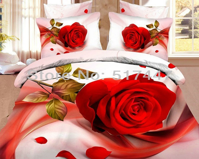 100% բամբակյա, վարդերի նախշերով, 4 մասից բաղկացած գեղեցիկ սպիտակեղեն: