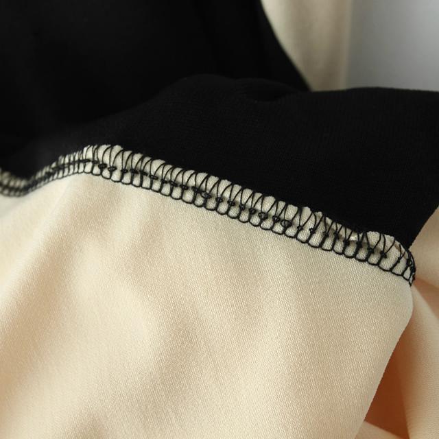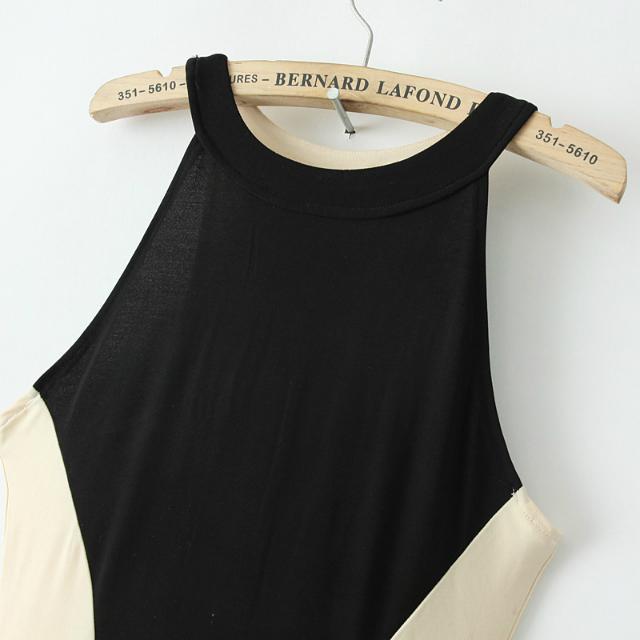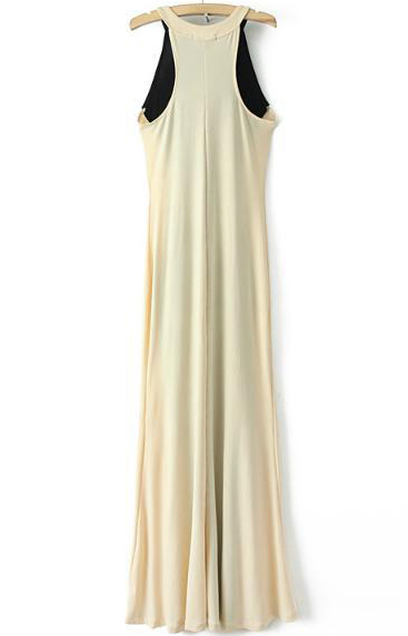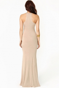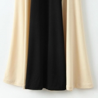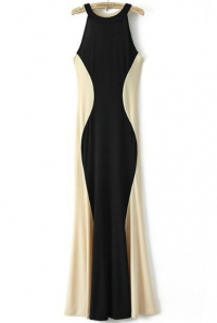 Վզի կլոր բացվածքով, անթև, մարմնագույնի և սևի համադրությամբ, երկար, կնոջ բարեմասնություններն ընդգծող երեկոյան շրջազգեստ: