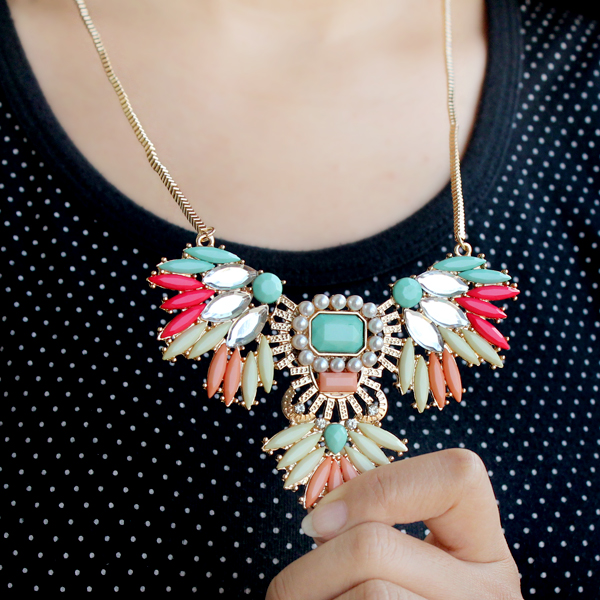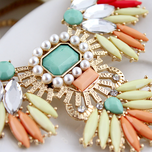 Չժանգոտող մետաղյա նութից, վառ գունավորմամբ քարերով, գեղեցիկ վզնոց:
