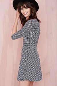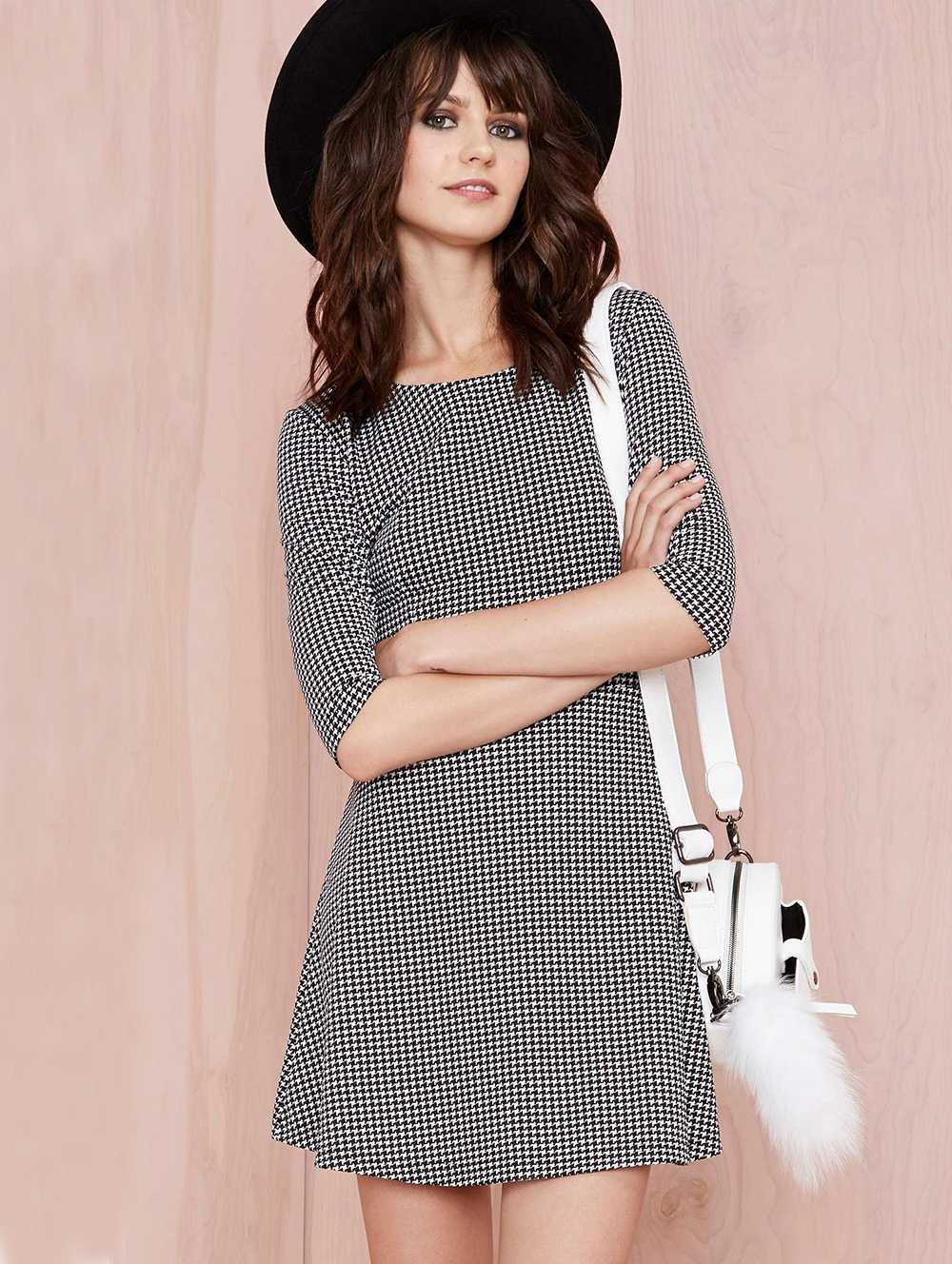 Վզի կլոր բացվածքով, թևերի մինչև արմունկները երկարությամբ, մողրագույն, կարճ, ամենօրյա շրջազգեստ: