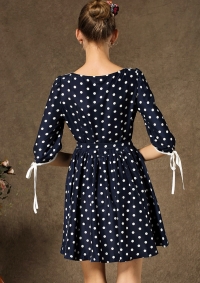 Կլոր օձիքով, 3/4 թևերով, թևերի ծայրերում կապիչներով, գոտկային հատվածում գոտիով, առօրյա մինի շրջազգեստ: