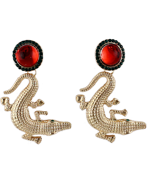 Մեծ կարմիր քարով, կոկորդիլոսի տեսք ունեցող օղեր: