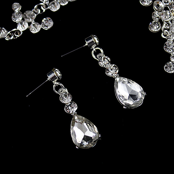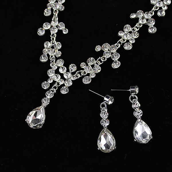 Թափանցիկ փոքր և մեծ քարերով, նուրբ դիզայնով շղթա և օղեր: