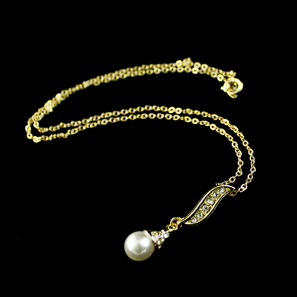 Մարգարտյա քարով, հետաքրքիր դիզայնով, ոսկեգույն վզնոց և օղեր: