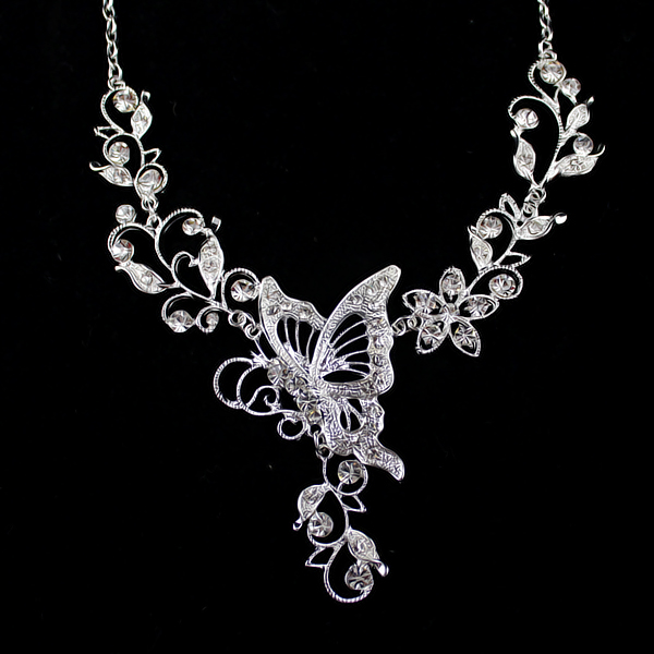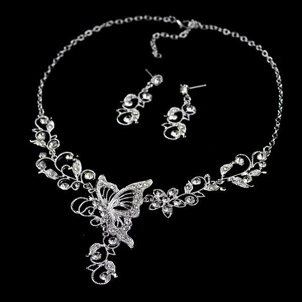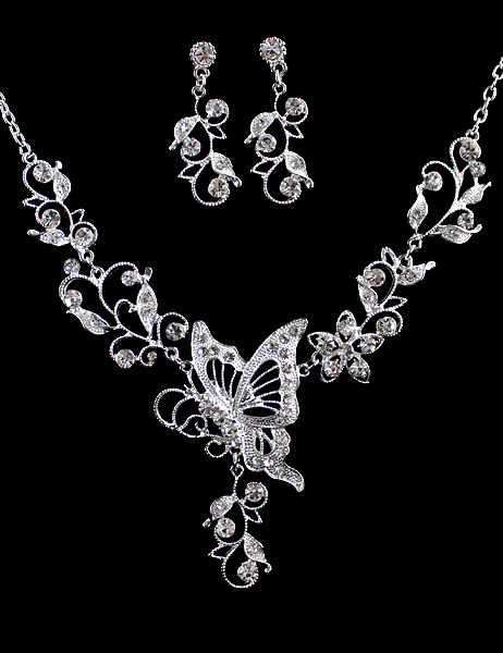 Փոքր թափանցիկ քարերով, թիթեռի տեսք ունեցող, յուրօրինակ նախշազարդ օղեր և վզնոց: