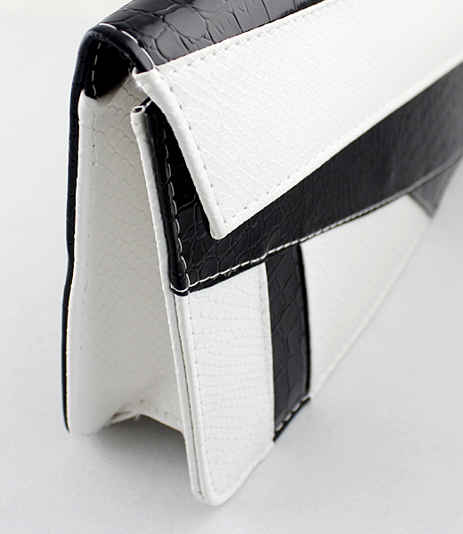 Միջին չափի, կաշվե, սևի և սպիտակի համադրությամբ, դասական, գործնական պայուսակ: