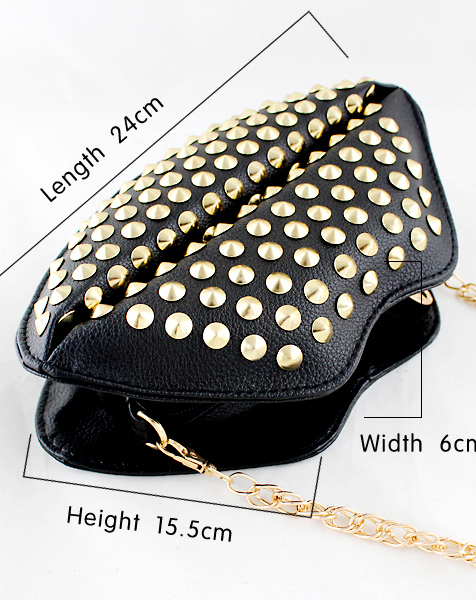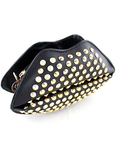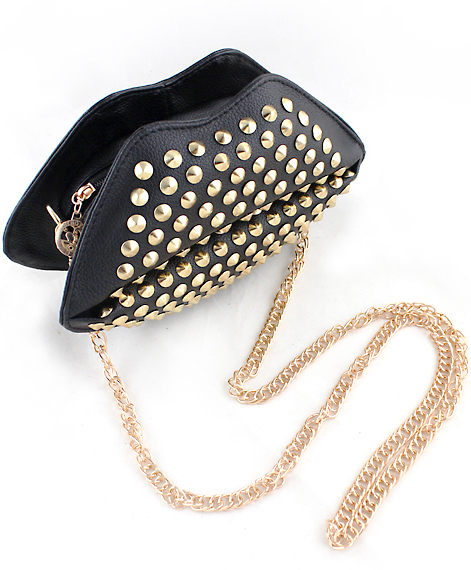 Ոսկեգույնի և սևի համադրությամբ, շրթունքի տեսք ունեցող, առօրյա նորաձև պայուսակ: