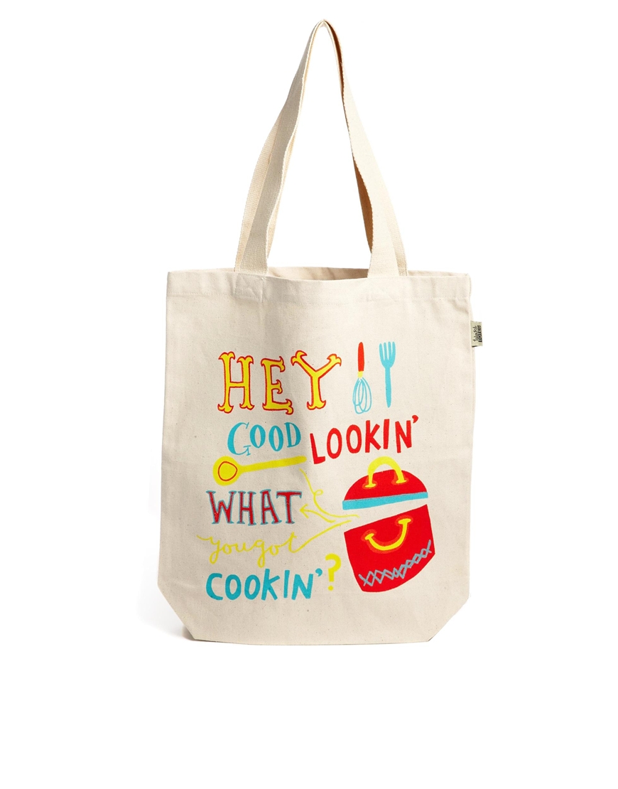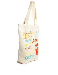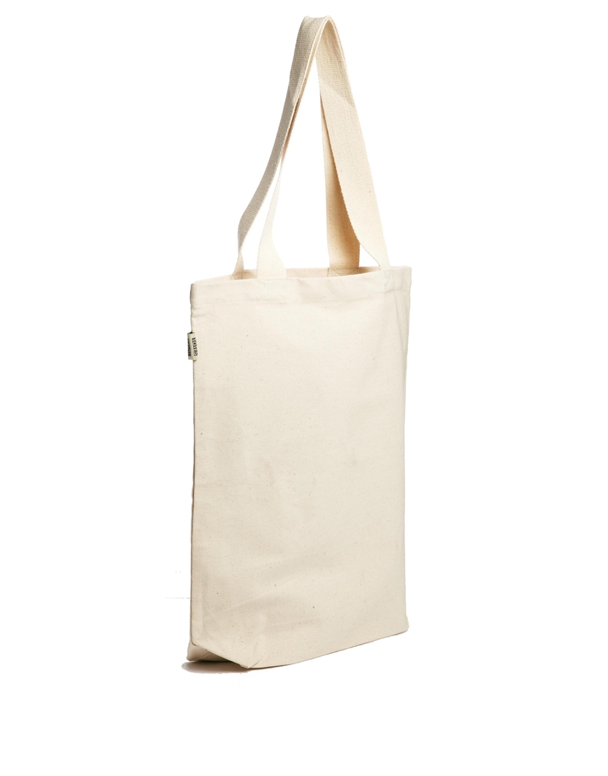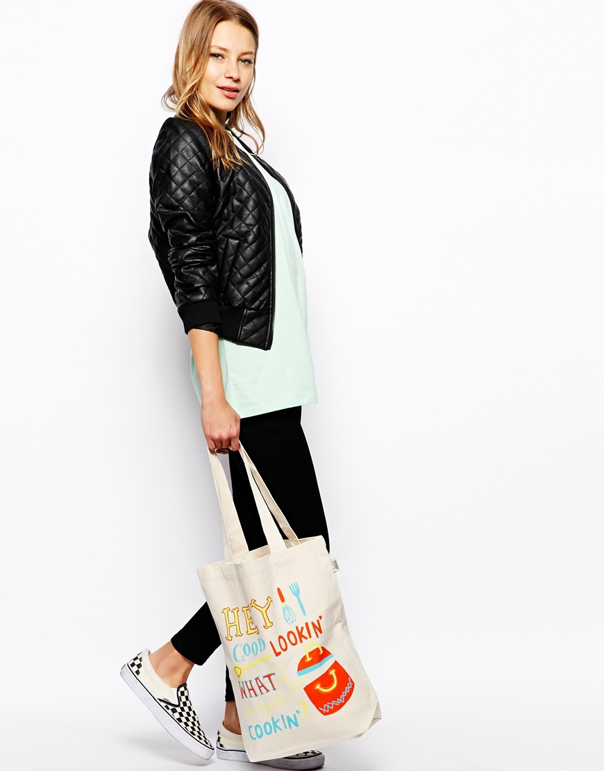 Մեկ ընդհանուր գրպանով, միջին չափի, լատինատառ գրվածքով առօրյա պայուսակ: