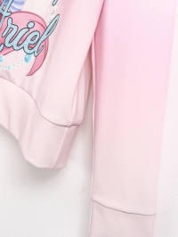 Վզի կլոր բացվածքով, երկարաթև, վարդագույնի երանգների նուրբ անցումով, առաջամասում մուլտհերոսուհի Արիելի նկարով, նորաձև, ամենօրյա բլուզ: