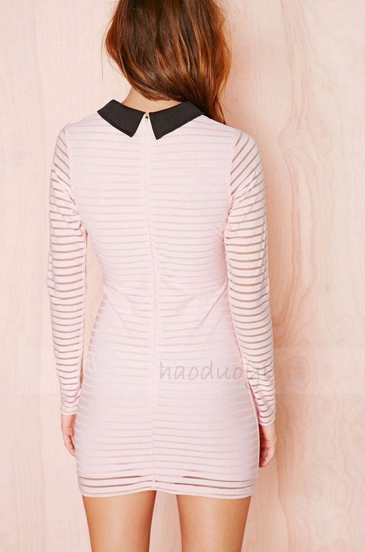 Փակ օձիքով, երկարաթև, վարդագույնի և թափանցիկ կտորի համադրությամբ, ամենօրյա, թեթև աշնանային շրջազգեստ: