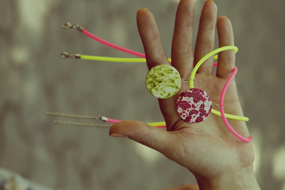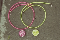 50սմ երկարությամբ, վառ էլեկտրիկ վարդագույն և դեղին շղթայով, նորաձև վզնոց: