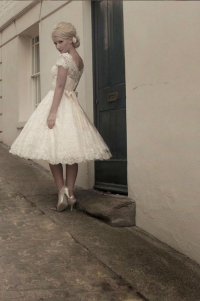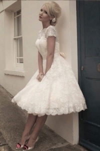 Կարճ, ժանյակավոր հարսանեկան զգեստ