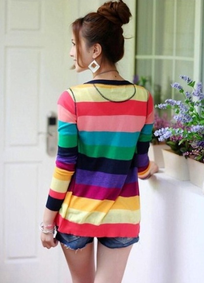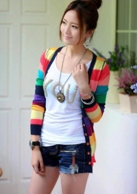 Վզի սրտաձև բացվածքով, երկարաթև, առաջամասում կոճակներով, վառ գունավորմամբ, նորաձև ժակետ: