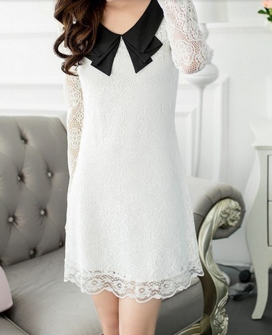 Կլոր բացվածքի օձիքով, երկարաթև, ամբողջությամբ ժանյակավոր, դասական գարնանային-աշնանային շրջազգեստ: