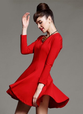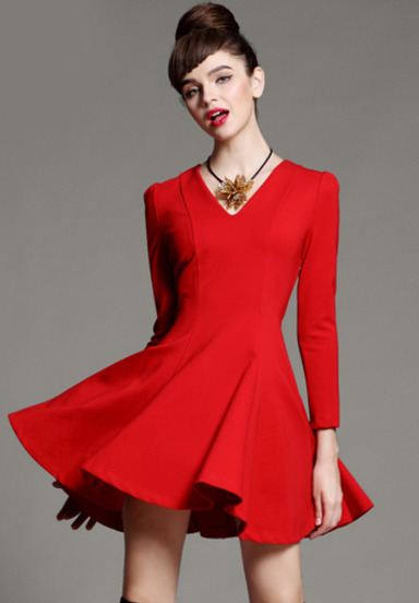 Վզի V-աձև բացվածքով, երկարաթև, դարսերով, նորաձև կոկտելային շրջազգեստ: