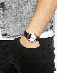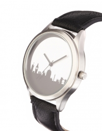 Կլոր գլխիկով, գլխիկի ներսում հայտնի շինությունների ստվերված նախշով, նորաձև ժամացույց: