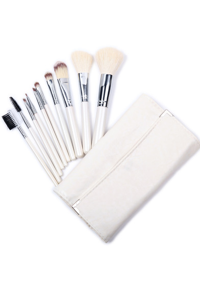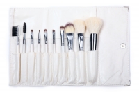 10 վրձնից բաղկացած, սպիտակ, դրամապանակի տեսք ունեցող տուփով, գեղեցիկ դիմահարդարման վրձիններ: