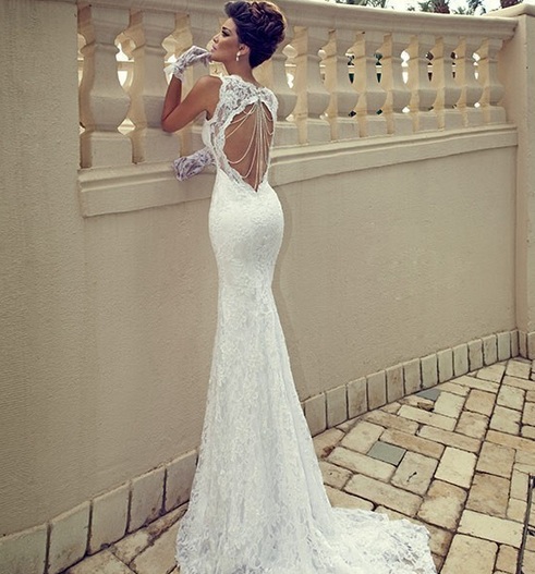 Մեջքային հատվածի հետաքրքիր բացվածքով հարսանեկան զգեստ