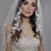 Երկշերտ, ծայրերին ասեղնագործ ծաղկային նախշով, նորաձև հարսանեկան քող: