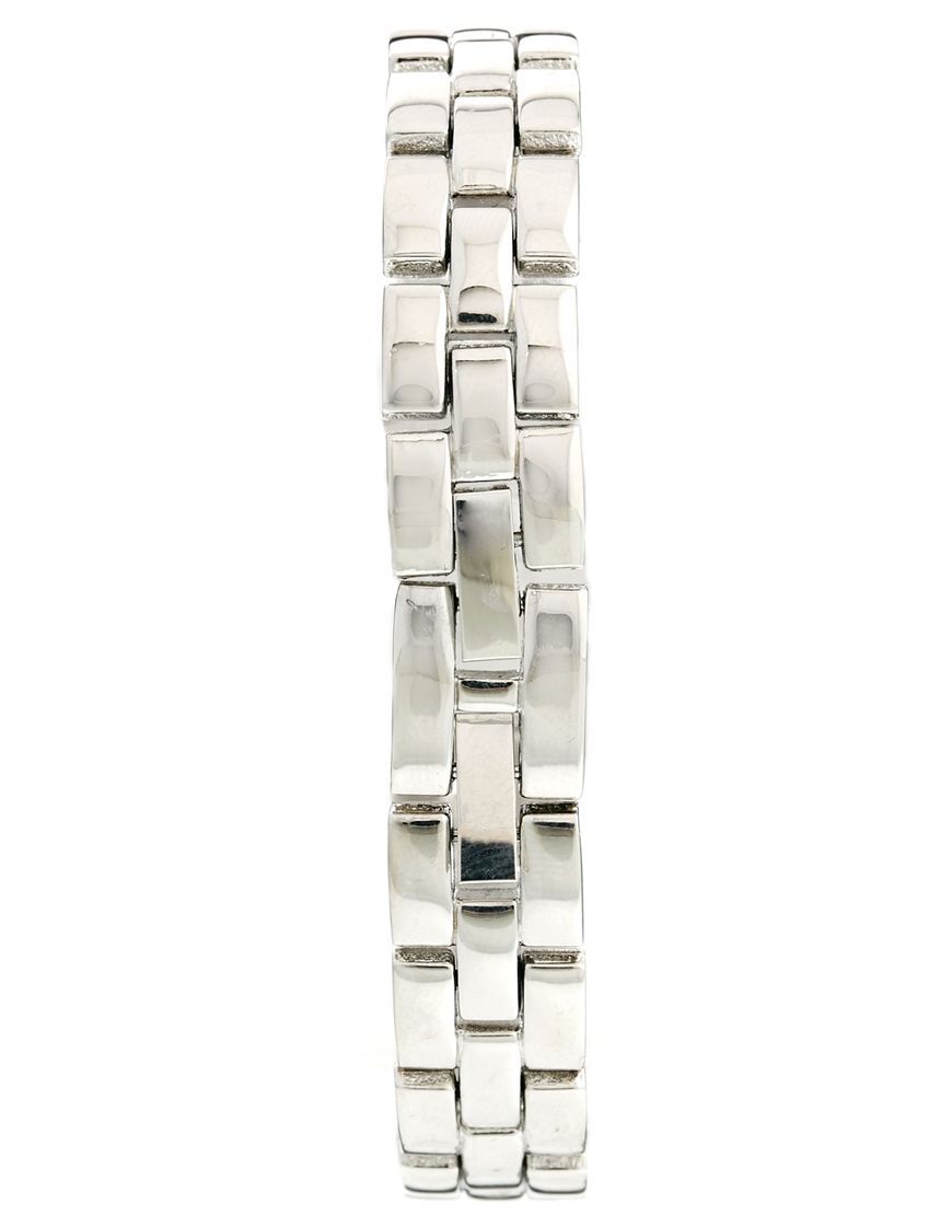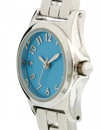 Արծաթագույն, կապույտ գլխիկով, ներաձև ժամացույց, որը կարող եք կրել և' ազատ ոճի հագուստների հետ, և' կոկտեյլային զգեստների հետ: