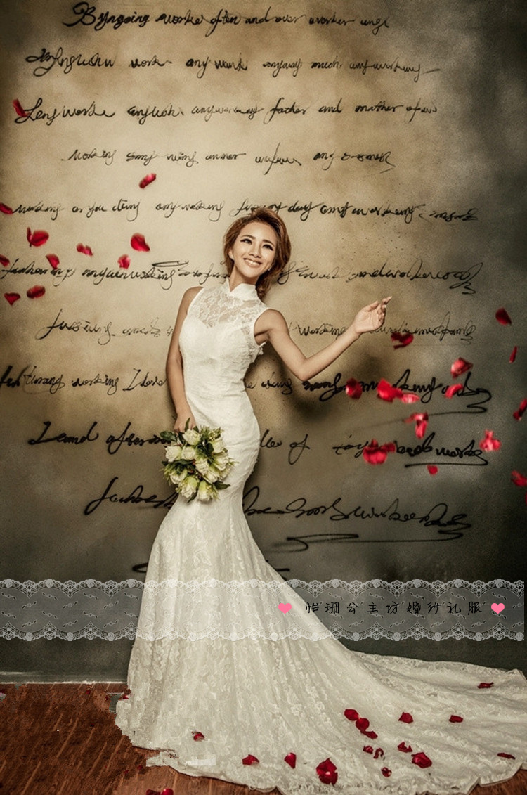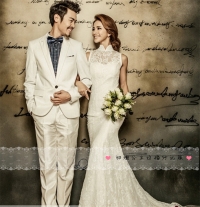 Բարձր վզով, ամբողջությամբ ժանյակավոր, վերևից ուղիղ իջնող, ներքևի հատվածում թեթև լայնացող, անթև, շքեզ և նորաձև հարսանեկան զգեստ:
