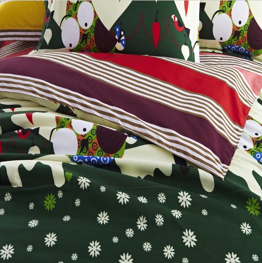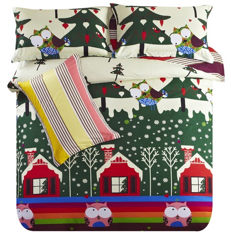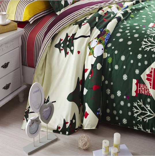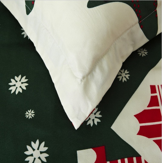 Ձմեռային և ամանօրյա նախշերով գեղեցիկ սպիտակեղեն, կազմված 4 մասից: