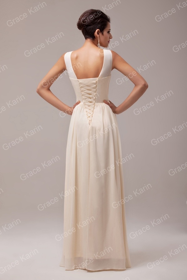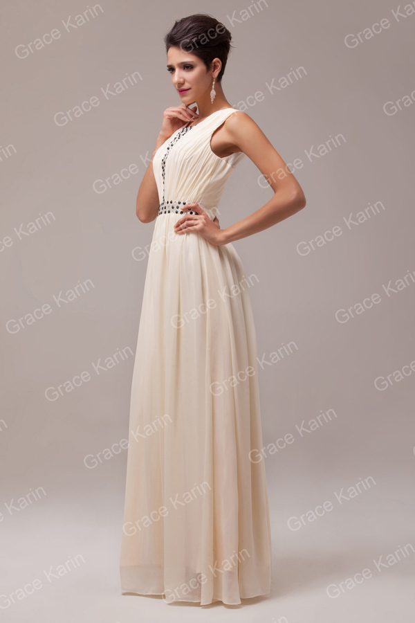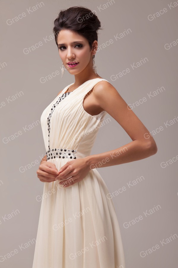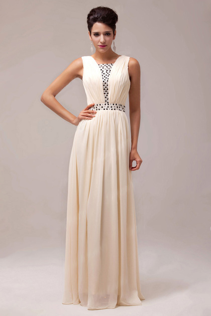 Նեջքային հատվածում ձգվող կապիչներով, առաջմասում մոդերին դիզայնով, սև և սպիտակ քարերով, մարմնագույն, երկար շրջազգեստ: