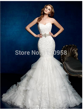 «Ջրահարսի» տեսքով հարսանեկան զգեստ, որը ըդգծում է մարմնի ամբոջ գեղեցկությունը, իսկ ներքևի փարթամ կարված շիֆոնը շքեղ տեսք է տալիս, զգեստին: