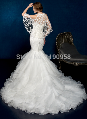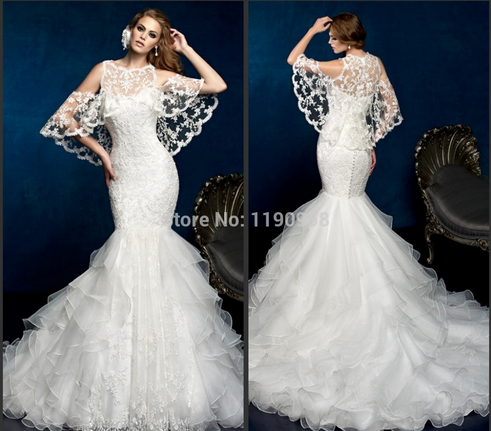 Գեղեցիկ, ժանկայակվոր թիկնոցով հարսանեկան զգեստ
