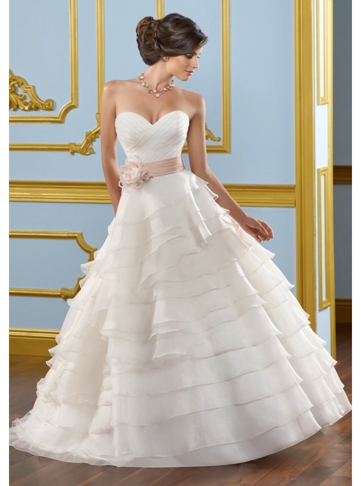Առանց ուսակապերի, սրտաձև բացվածքով, գոտկային հատվֆածում գոտիով, նուրբ հարսանեկան զգեստ, որը Ձեզ կպարգևի անչափ հմայիչ տեսք: