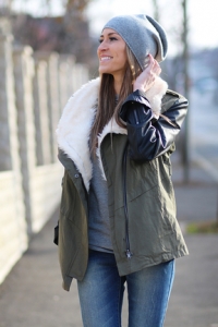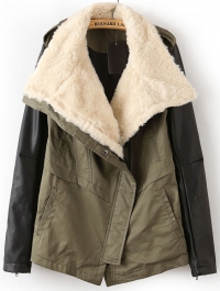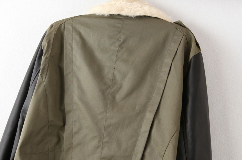 Վզի հատվածում մորթե, լայն բացվածքով, թևերի հատվածում կաշվե, ընդհանուր կտորե, առաջամասում գրպաններով, ասիմետրիկ, ամենօրյա նորաձև վերնահագուստ: