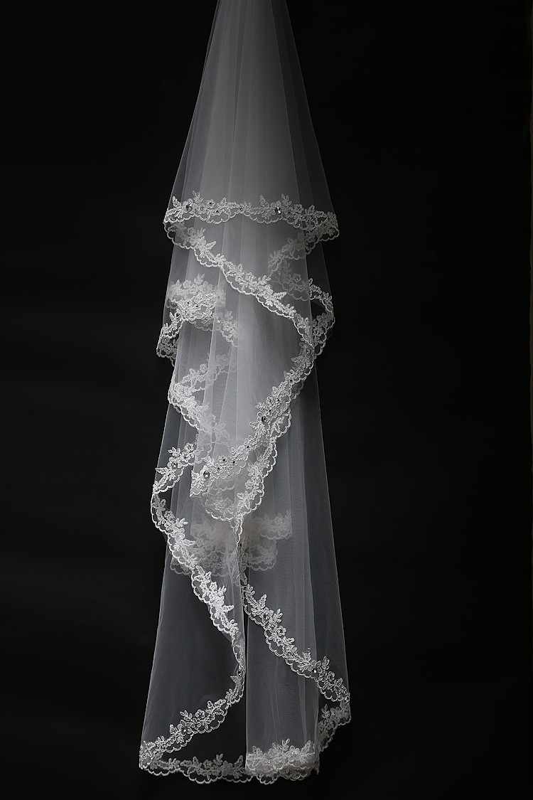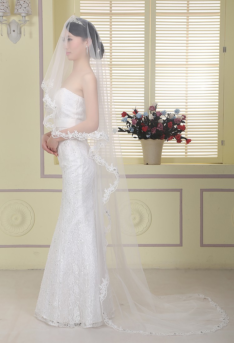 Ծայրամասերում ժանյակավոր և քարերով հարսանեկան քող