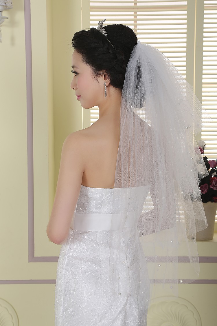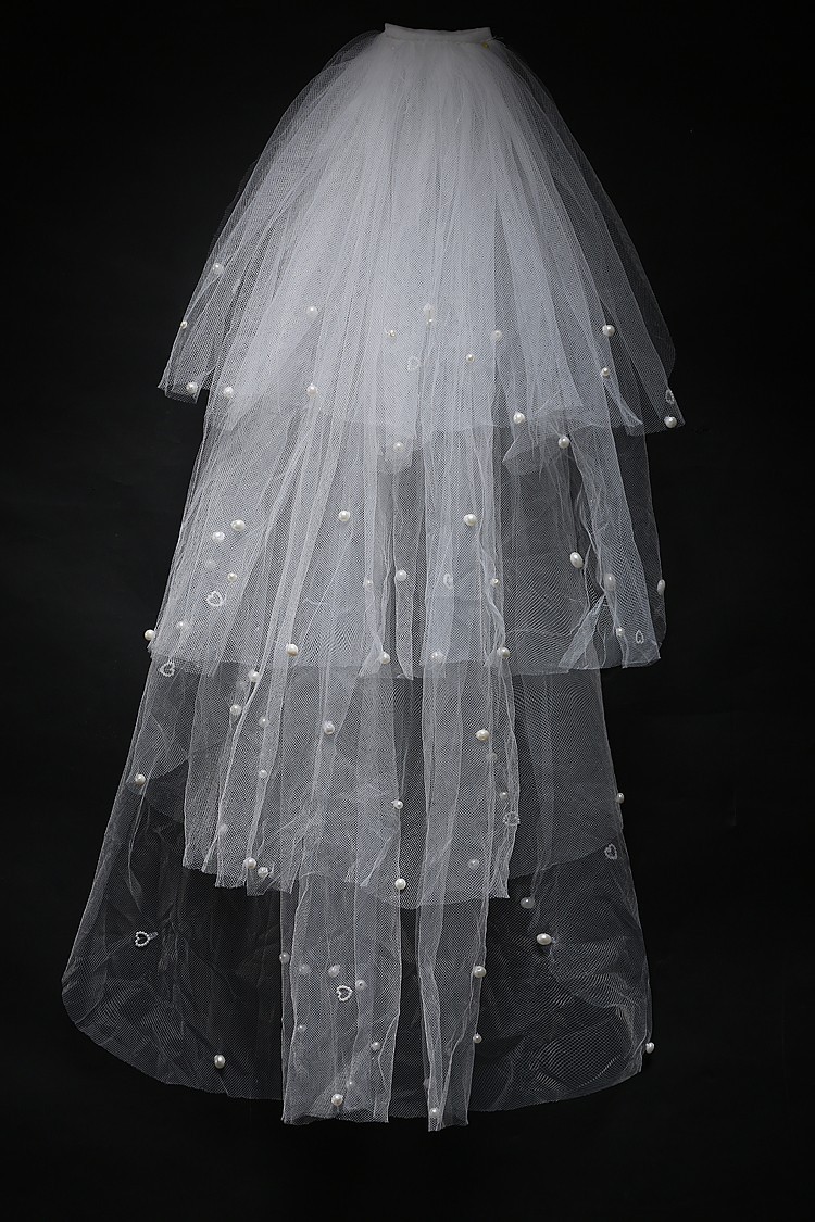 Փոռերով և մարգարտյա քարերով պատված, միջին երկարության քող: