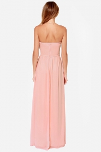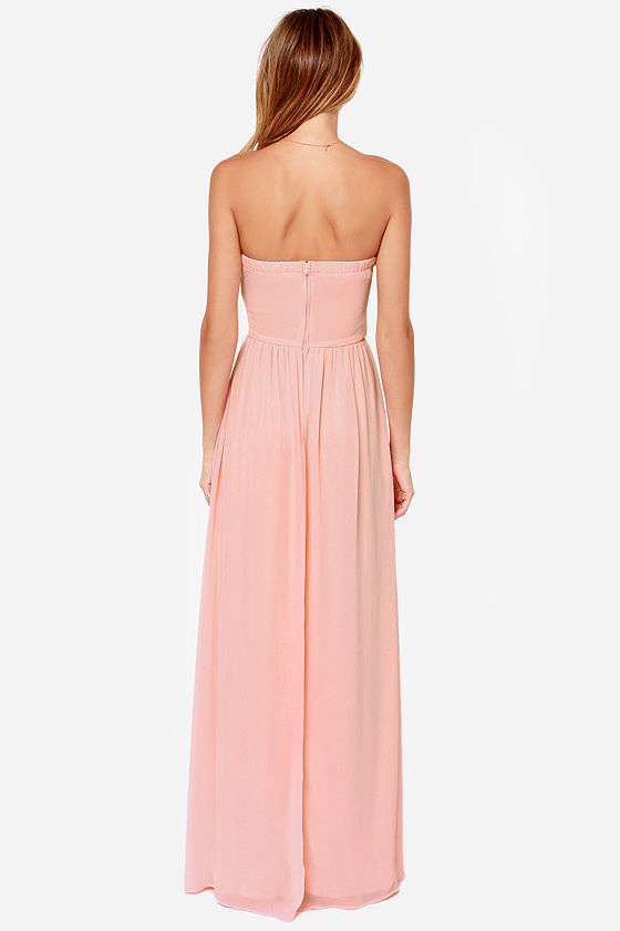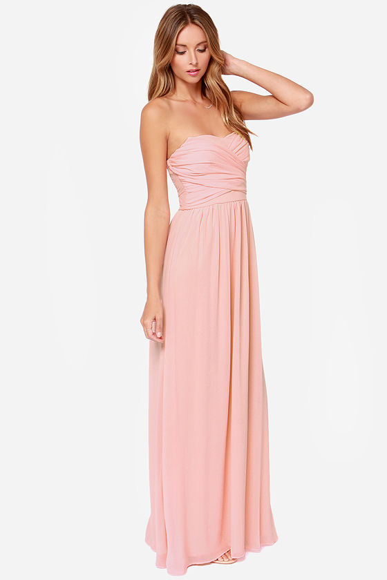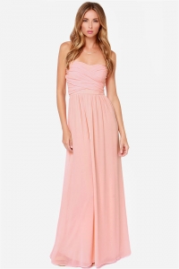 Առանց ուսակապերի, գոտկային հատֆվածից վերև իրար վրա հավաքված, նուրբ և հասարակ դիզայնով երեկոյան զգեստ: