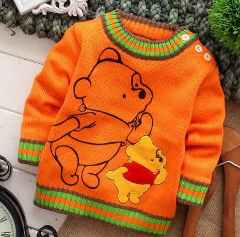 Վզի կլոր բացվածքով, երկարաթև, Վինի թուխի նկարով գեղեցիկ բլուզ, նախատեսված նորածիններից մինչև 24 ամսական երեխաների համար: