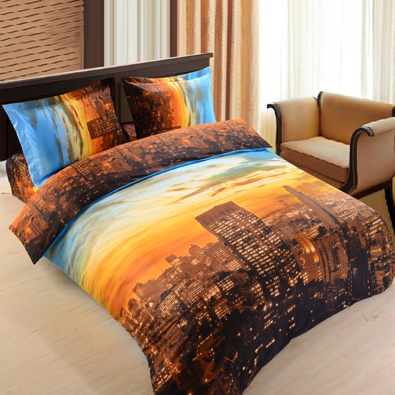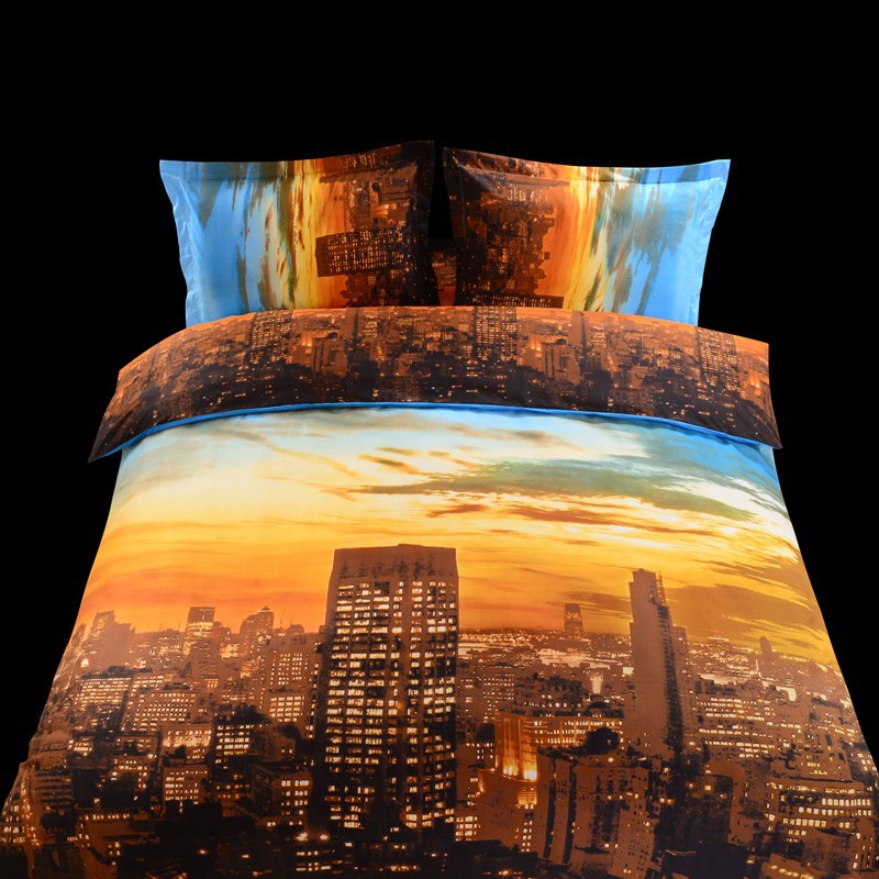 Քաղաքային մայրամուտի 3D նկարով սպիտակեղեն
