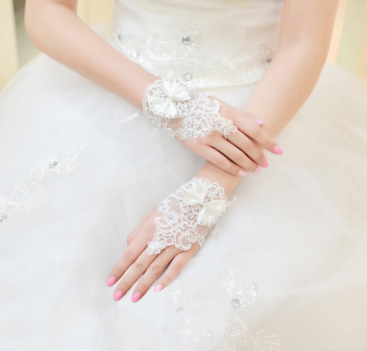 Ժանյակավոր նորաձև ձեռնոց, որն իր վրա ունի մետաքսե բանտ: