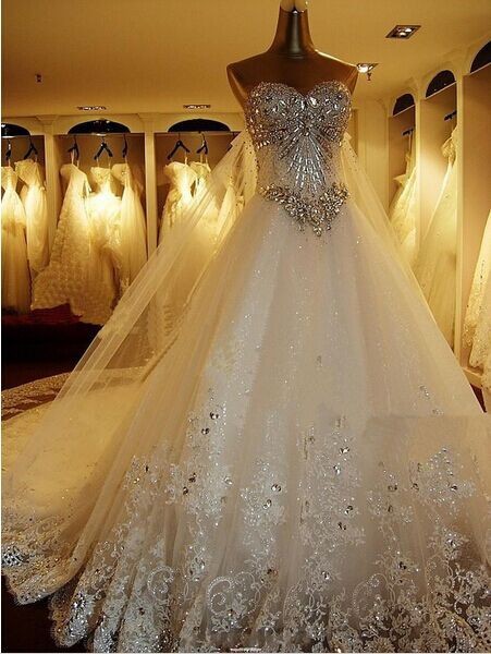 Քարերով պատված և ժանյակավոր շքեղ հարսանեկան զգեստ, որը ետևից ունի երկար ցացային հատված, որն էլ ավելի շքեղ տեսք է հաղորդում զգեստին: