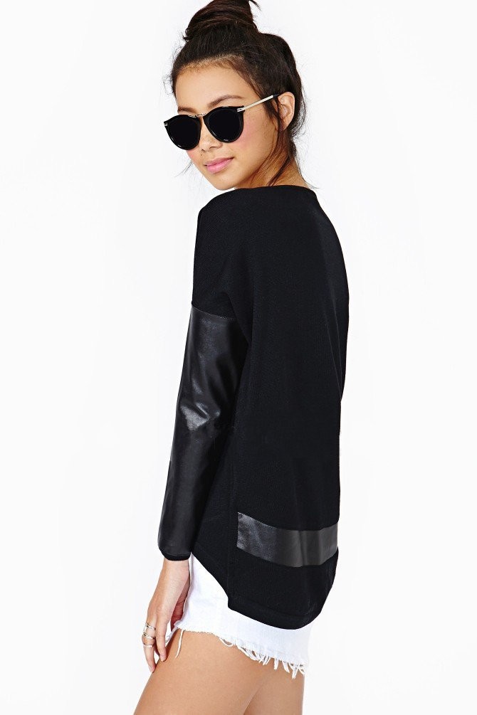 Վզի լայնակի բացվածքով, երկրաթև, կաշվե և բամբակյա, գեղեցիկ, ամենօրյա բլուզ: